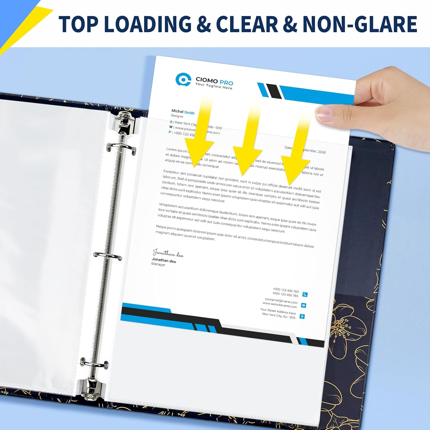 - Standard Hole Punch Design: Standard hole punch design fits into any 3-ring binder, allowing you to organize and store your documents easily