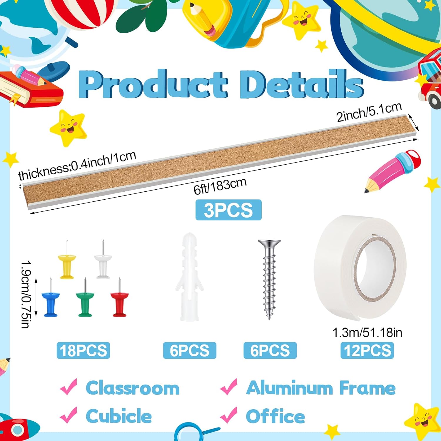 - Packing List: you can will get 3 pieces of 6 ft long bulletin board strips, the sufficient quantity enough to meet your daily using needs and replacement needs; You can also share them with people around you