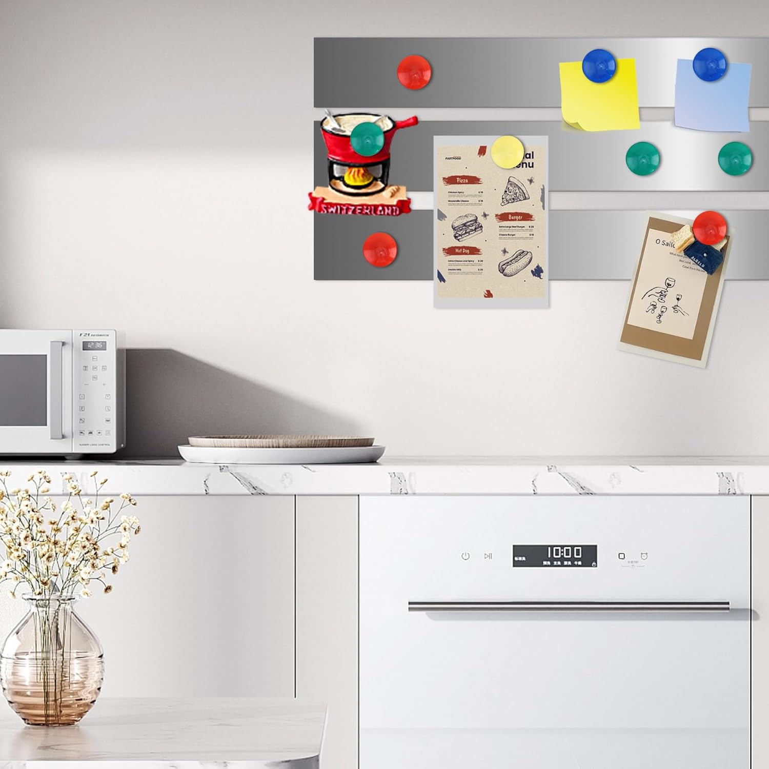 - Easy to Cut & Use: Our metal tapes are highly flexible and pliable, easy to cut, you can easily cut them to your desired length with scissors or tin snips, peel off the stickers on the back and hang pictures, notes, reminders, cards wherever you want