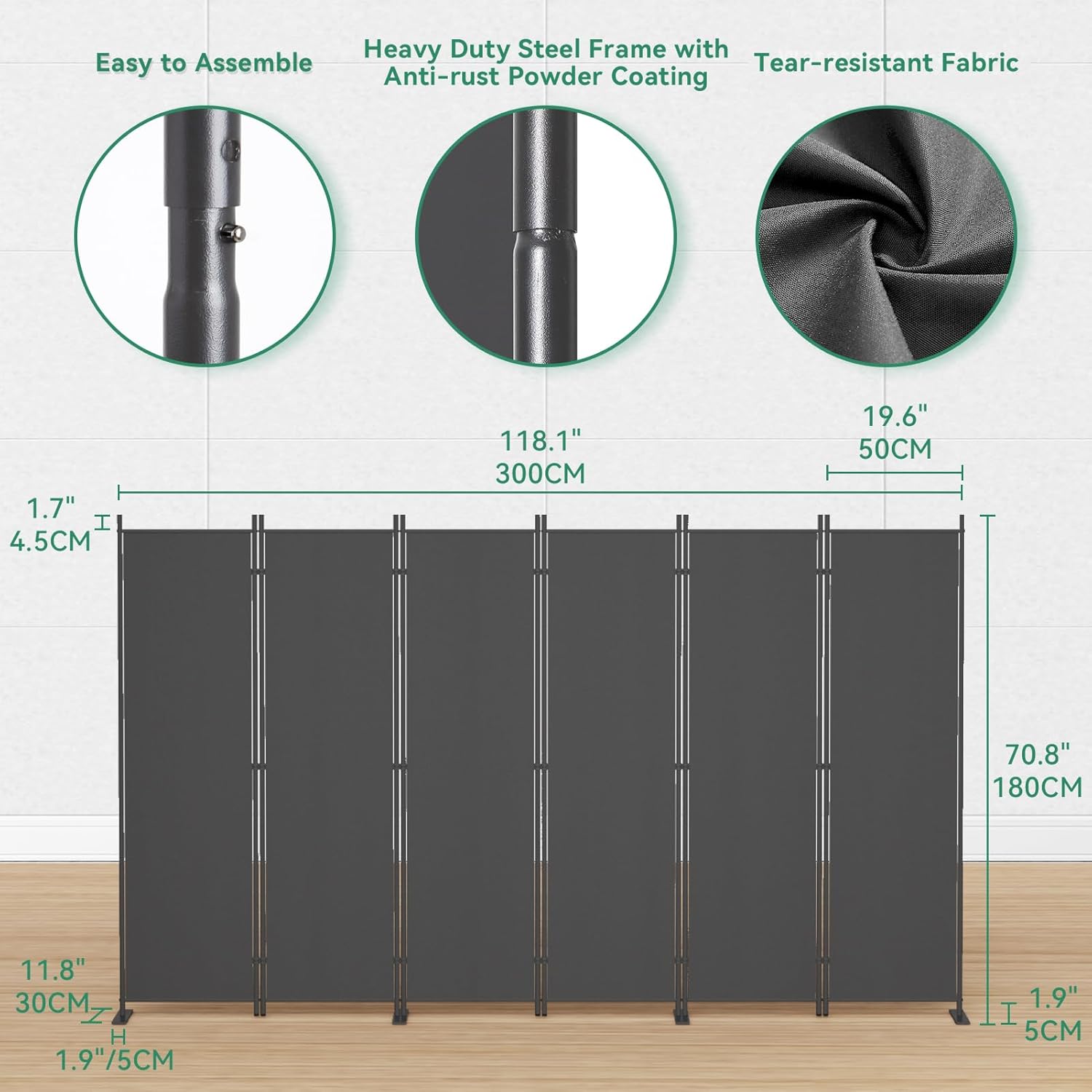 Helios&Hestia 6-Panel 6 ft Tall Indoor Folding Room Divider, Portable Privacy Screen, Freestanding Partition Separator, Temporary Wall Separation for Bedroom, Office, 120" W X 71" H, Dark Grey