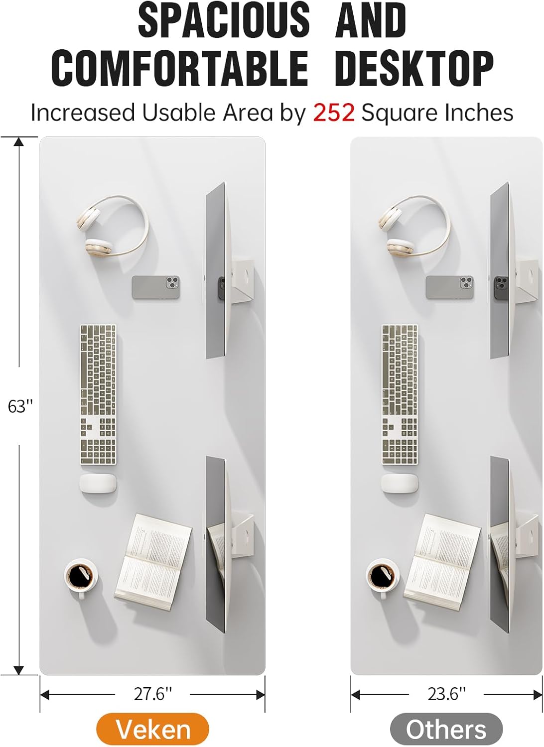 Veken 63x27.6 Inch Large Electric Standing Desk, 4 Memory Heights Adjustable,Sit to Stand Up, Work Home Office Computer Table for Walking Pad, Gifts for Dad, Wooden Desktop Desks, White