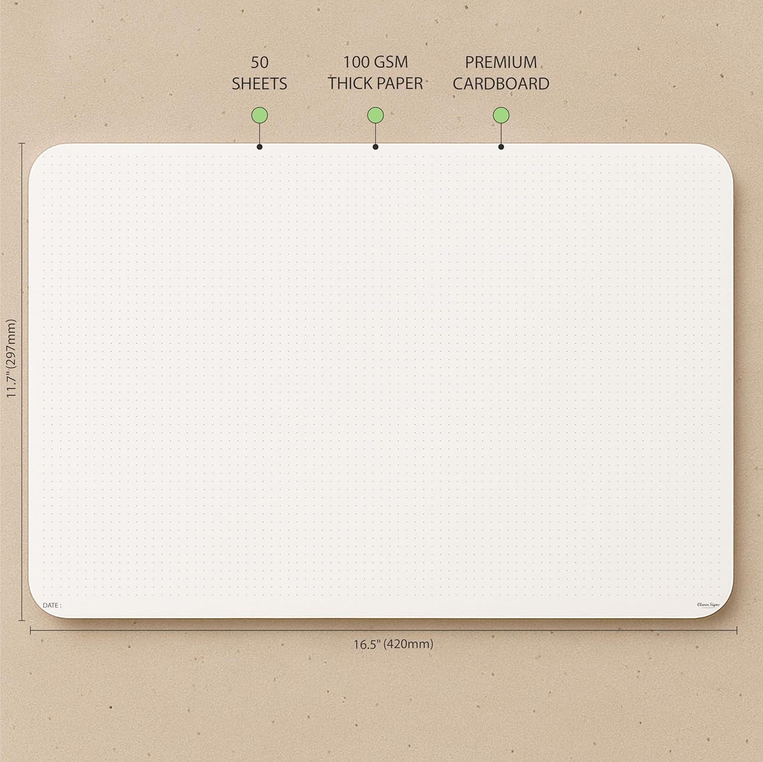 CLEVER SIGNS A3 Dot Grid Notepad (11,70" x 16,55") - XLarge Dotted Memo Desk Pads-Premium Paper with Cardboard Back Support - Ideal for Note-taking, Planning, Sketching, and Journaling