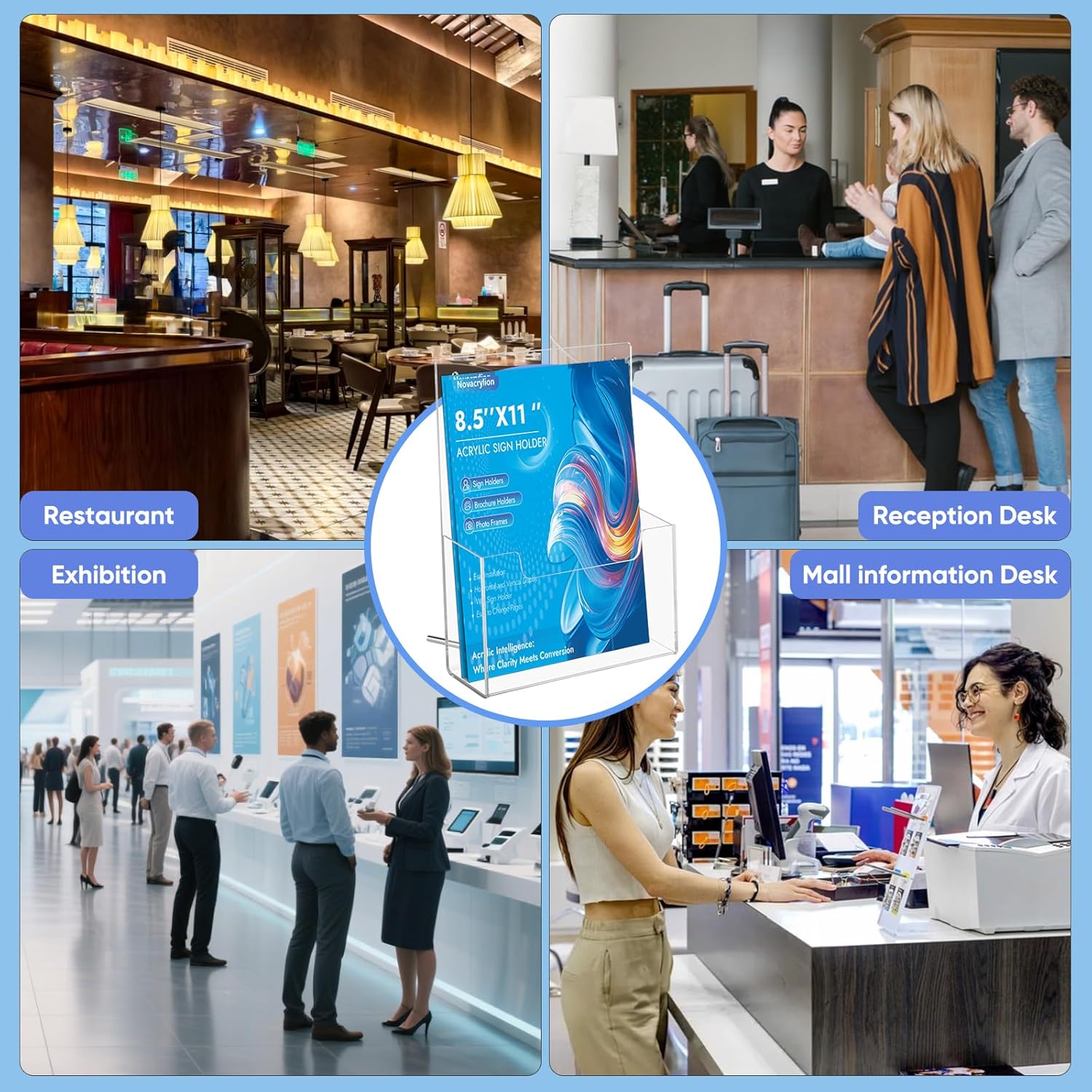 - 【Multi-Venue Versatility (2/4 Pack Options)】 Perfectly sized at 8.5x11 for menus, brochures, programs, and signage. Use this acrylic brochure holder rack in offices, schools, churches, hotels, or retail spaces – adapts seamlessly to trade shows, countertops, and wall displays